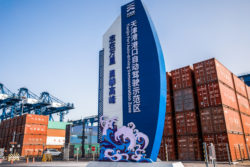 在不遠(yuǎn)處,一塊十幾米高的牌子刻著人們對(duì)這個(gè)“新大陸”的命名:天津港港口自動(dòng)駕駛示范區(qū),這是目前全球唯一一個(gè)以港口為應(yīng)用場(chǎng)景的自動(dòng)駕駛示范區(qū),亦由主線科技聯(lián)合天津港、中汽中心共同申請(qǐng),于2020年末正式揭牌,被賦予著打造世界一流智慧港口與加速自動(dòng)駕駛標(biāo)準(zhǔn)化、商業(yè)化落地的雙重使命與意義。