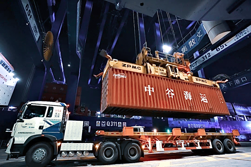 隨著一聲令下,首批新投入使用的六臺(tái)主線無(wú)人駕駛電動(dòng)卡車有序登場(chǎng),以完全無(wú)人駕駛的姿態(tài),成功實(shí)現(xiàn)了天津港北疆港區(qū)C段智能化集裝箱碼頭1#泊位聯(lián)調(diào)聯(lián)試。至此,這個(gè)僅歷時(shí)385天建設(shè)完成的“新一代智能化集裝箱碼頭”成為“智能時(shí)代新大陸”的又一宏偉版圖。