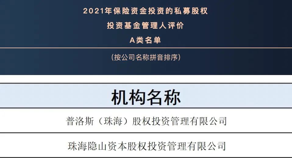 近日,中國保險資產管理業協會公布了2021年保險資金投資的私募股權投資基金管理人評價結果,普洛斯(珠海)股權投資管理有限公司、珠海隱山資本股權投資管理有限公司分別代表普洛斯及旗下隱山資本獲評A類基金管理人。其中,普洛斯(珠海)股權投資管理有限公司已連續兩年獲評,A類是該評價結果中的最高級別,代表了對普洛斯在基金及資產運營管理各方面綜合能力的持續認可。