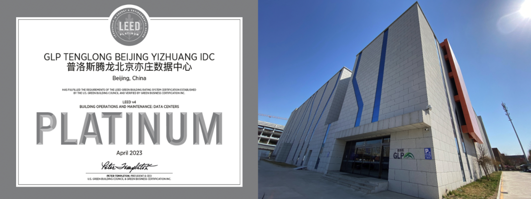 普洛斯騰龍北京亦莊數據中心已獲得美國綠色建筑評估標準體系LEED v4 O+M(既有建筑運營與維護)鉑金級認證。