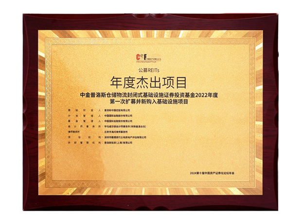 近期,第十屆中國資產證券化論壇(CSF)年會在杭州舉辦,中金普洛斯倉儲物流封閉式基礎設施證券投資基金(下稱“普洛斯REIT”)因其作為首批擴募成功項目帶來的積極示范效應,在今年的CSF年度嘉勉評選中榮獲“公募REITs年度杰出項目”(最高級別),是此次獲得該類最高嘉勉的兩只基礎設施公募REITs之一。