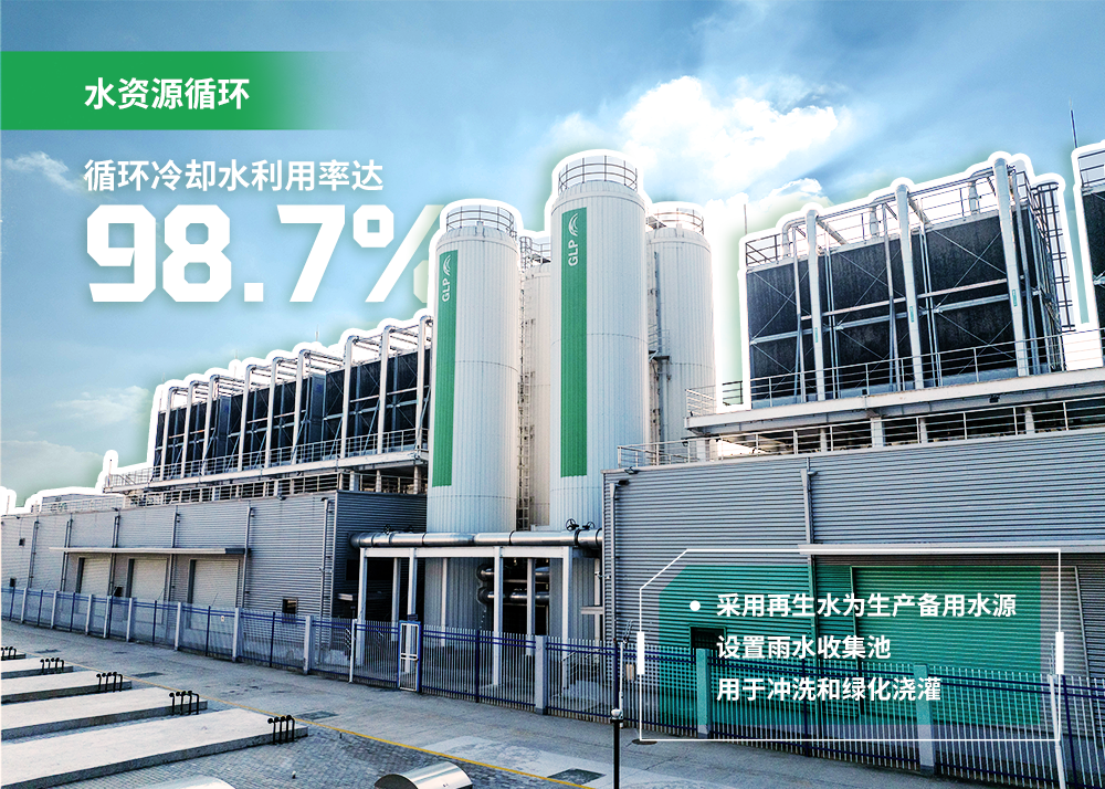 給排水系統的循環冷卻水,循環利用率達98.7%;采用再生水為生產備用水源,用作開式冷卻塔循環冷卻水;