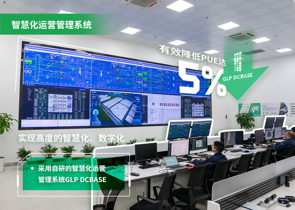 普洛斯常熟東南數據中心采用自研智慧化運營管理系統GLP DCBASE,實現高度的智慧化、數字化,提高運營效率,有效降低PUE。