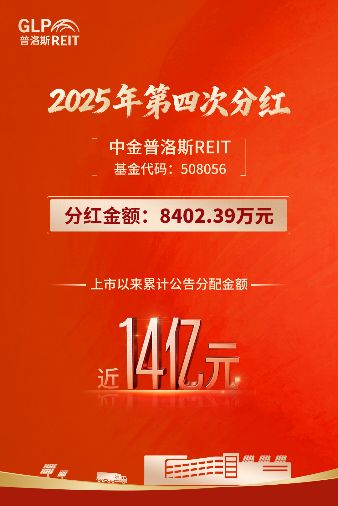 中金普洛斯REIT公告2025年第四次分紅,上市以來(lái)累計(jì)分配近14億元